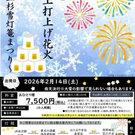 第41回西部雪まつり 雪上打上げ花火 ~上杉雪灯篭まつり~ツアー