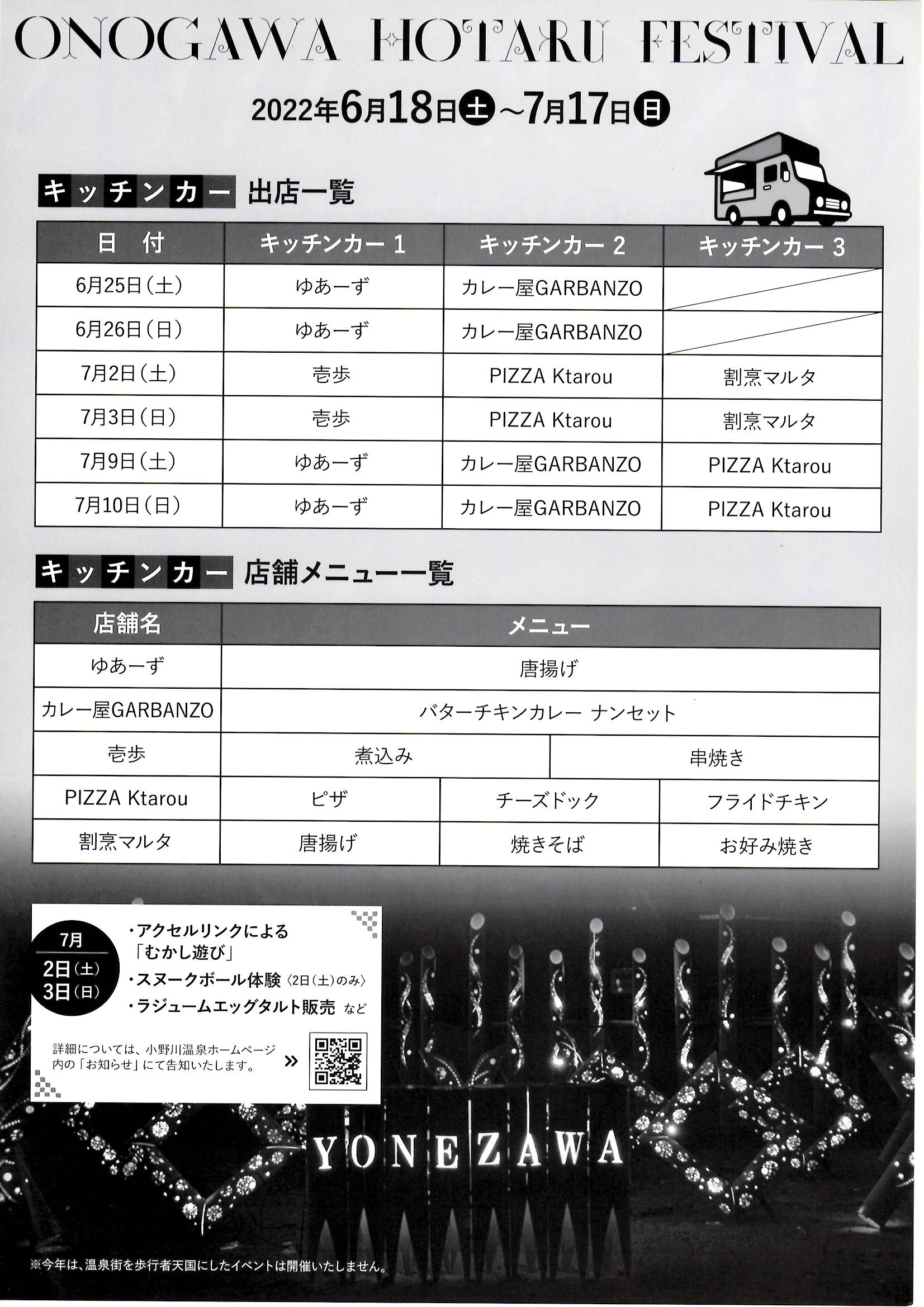 米沢の夏の風物詩「小野川温泉ほたるまつり」が開催中