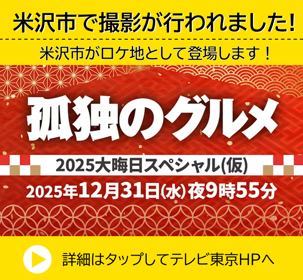 2025年12月31日㈬21:55~より放送予定の「孤独のグルメ 2025大晦日スペシャル」で山形県米沢市がロケ地として登場します!