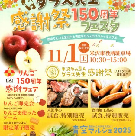 秋の贈り物!「ダラス先生感謝祭150周年フェスタ」舘山りんごと米沢牛と青空マルシェのスペシャルコラボ11/1(土)開催!