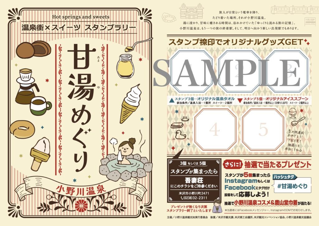 ただいま小野川温泉ではスイーツ×温泉街、「甘湯めぐり」スタンプラリーを開催中です!
